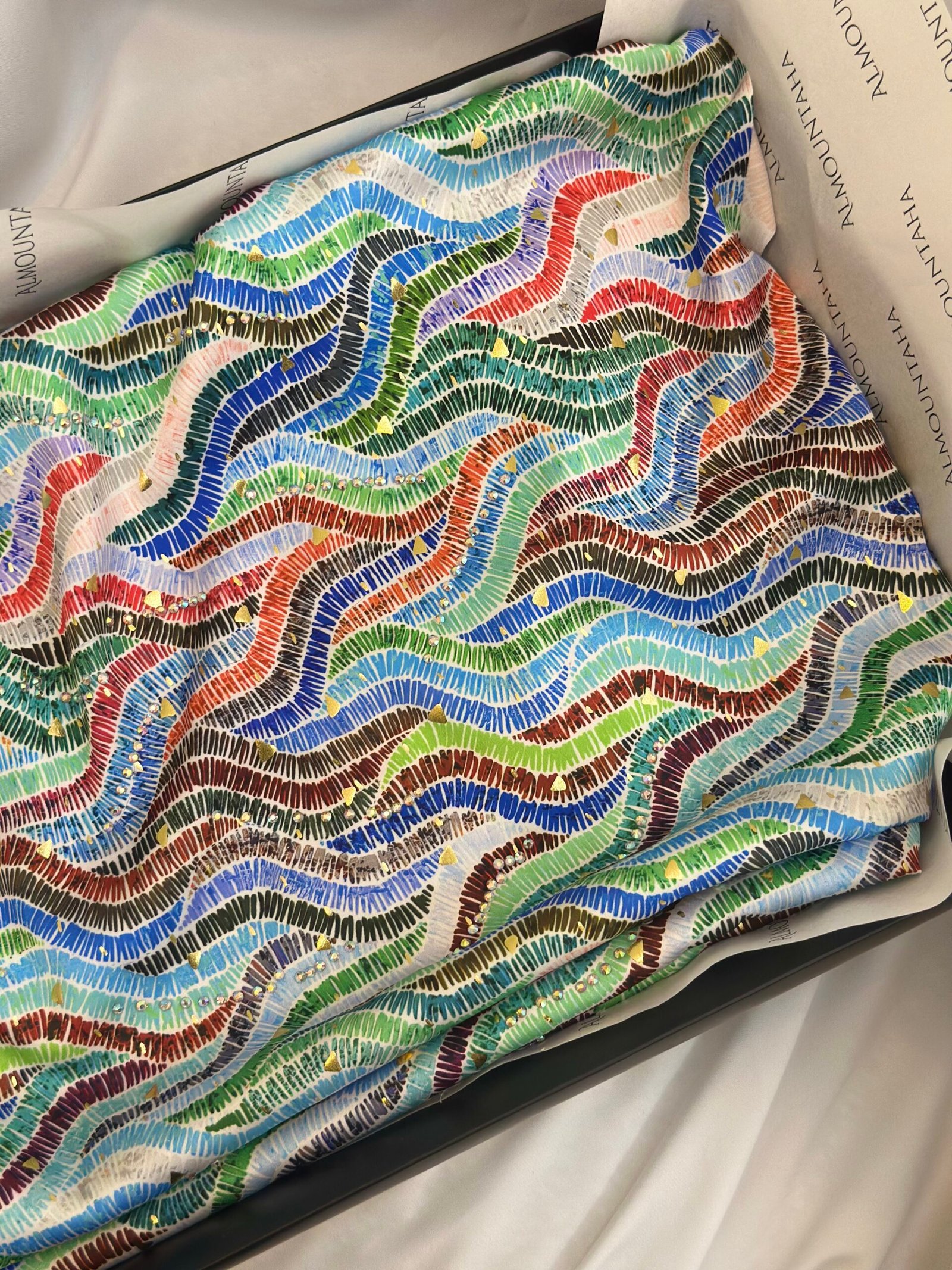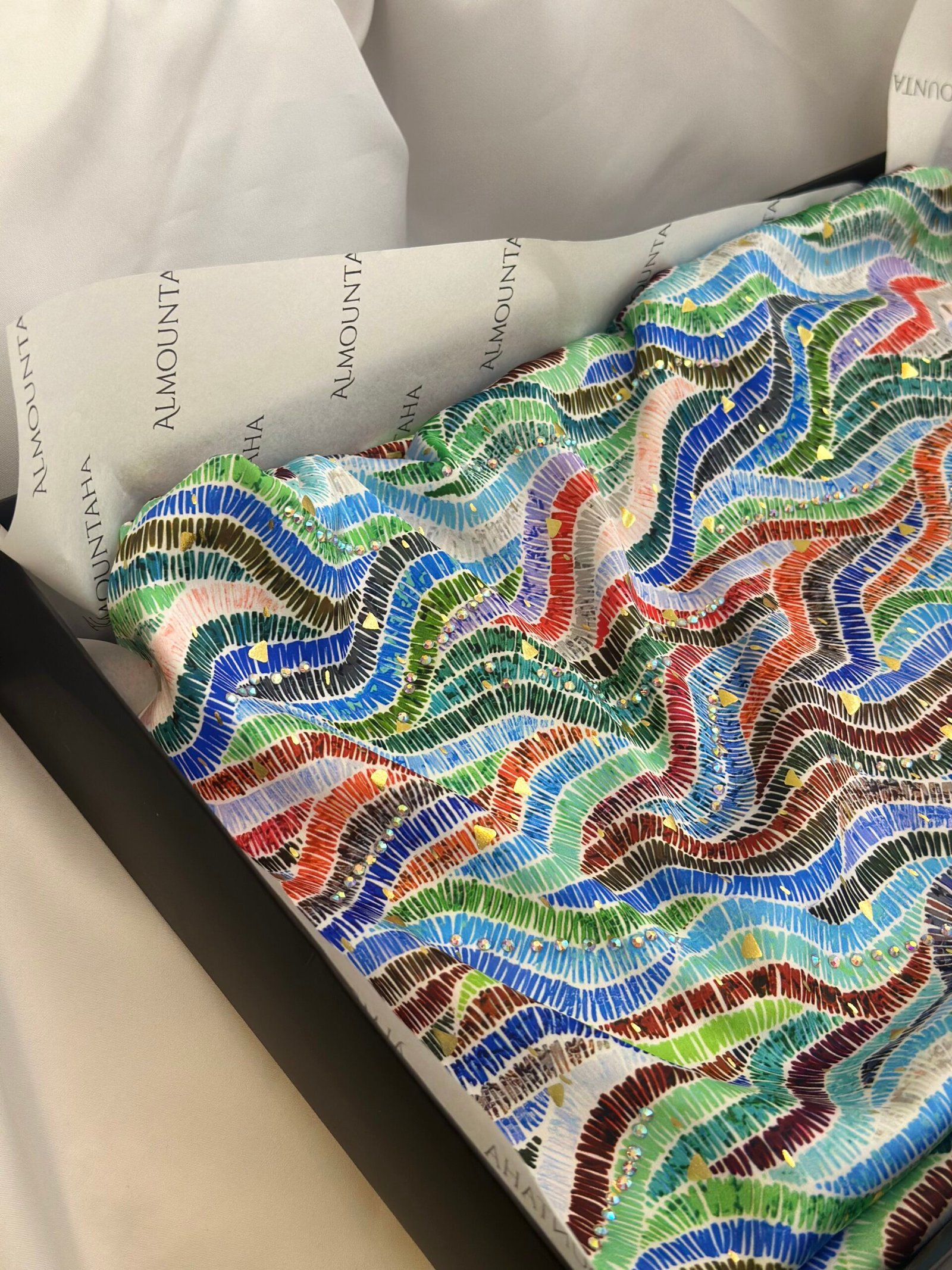 قماش حرير ناعم ملون مرصع بالكريستالات